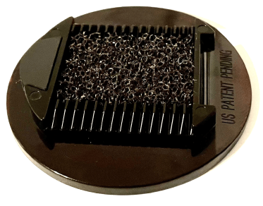 Ustensilă care distribuie în mod egal și uniform praful de sacâz atât pe suprafața părului de arcuș cât și între fire.
